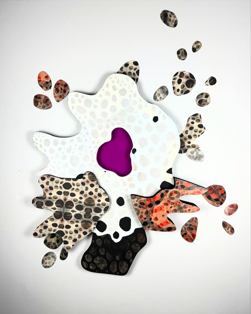 Exploring the relationships between invisible digital systems and systems in nature, Rhizome draws inspiration from cell structure, membranes, and coral to create sculptural paintings and installations.